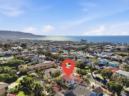 Nestled on one of the most coveted streets in South Redondo Beach, this enchanting 1937 Spanish-style estate blends historical charm with practical updates. From the moment you arrive, you will be captivated by the character, lush landscaping, and the 25 majestic palm trees that adorn the perimeter. Inside, you’ll discover a thoughtfully designed reverse floorplan. The lower level features four spacious bedrooms as well as a comfortable living area with French doors leading to the backyard courtyard. The upper level is an open layout and showcases the main living space with a fireplace, a half bathroom, dining area, and a beautifully updated kitchen with brand new, eco-engineered countertops, bar seating, a Wolf range and Sub-Zero refrigerator. A built-in breakfast nook offers a perfect spot to enjoy your morning coffee while savoring the breathtaking, west-facing ocean views. French doors lead to a spacious patio off the kitchen, where you can BBQ (gas hookup is present!) and dine al fresco under a retractable awning. There is also a balcony opposite the patio that looks over the resort-like backyard. The home’s interior exudes timeless elegance, highlighted by newly refinished real hardwood floors, Spanish tile on the stair risers, classic Spanish wrought iron light fixtures and skip-trowel wall texture that evokes an elevated old-world charm. The primary suite is a serene retreat with a fireplace, walk-in closet, and an attached bathroom with dual sinks, a steam shower, and a separate jetted soaking tub. A detached studio casita, perfect for guests or as a private office, brings the total number of bedrooms and bathrooms to five. The detached two-car garage is freshly painted and carpeted and is currently set up as a rumpus room, offering endless possibilities. The backyard is magical, with mature landscaping, an in-ground hot tub/spool, a water fountain, and a cozy fireplace. It also offers exceptional privacy, making it feel like you are living in your own compound. The cherry on top of this historically preserved property is that its Mills Act-eligible, offering SUBSTANTIAL tax benefits/savings! With east-west exposure, panoramic views, and a location just 3.5 short blocks from the beach, the location is incredibly desirable, quiet and peaceful. Don’t miss this rare opportunity to own a piece of South Redondo history!
